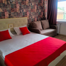 Гости могут разместиться в номерах разных категорий: Стандарт, Улучшенный, Полулюкс и Апартаменты. Уютные номера со всем необходимым: удобная кровать, стол и стулья, телевизор, холодильник, чайник, набор посуды и бесплатный Wi-Fi. В некоторых номерах есть балкон.