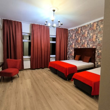 Двухкомнатные апартаменты с балконом. Уютный номер со всем необходимым: удобная кровать, стол и стулья, телевизор, холодильник, чайник, набор посуды и бесплатный Wi-Fi, балкон.