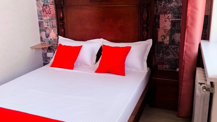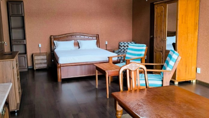 Уютный номер со всем необходимым: удобная кровать, стол и стулья, телевизор, холодильник, чайник, набор посуды и бесплатный Wi-Fi.