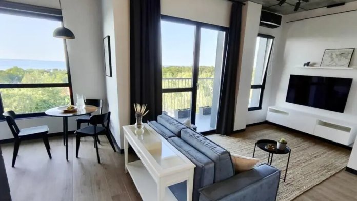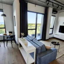 Апартаменты-студия с видом на море и живописные закаты. Просторные апартаменты в лаконичном, скандинавском дизайне с большими панорамными окнами на 8 этаже в новом ЖК «Кристалл». Всё наполнение абсолютно новое и премиум класса.