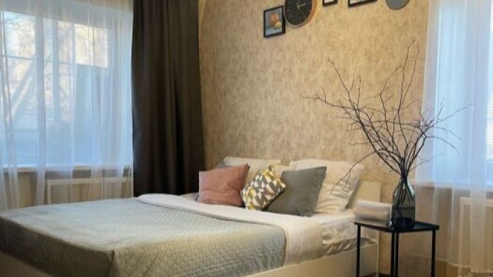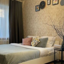 В квартире предоставлены все удобства для комфортного проживания: холодильник, стиральная машина, телевизоры как на кухне, так и в комнате, просторная двуспальная кровать размером 160*200 см, а также удобный двуспальный диван размером 140*200 см. Предоставляется качественное постельное белье и полотенца.