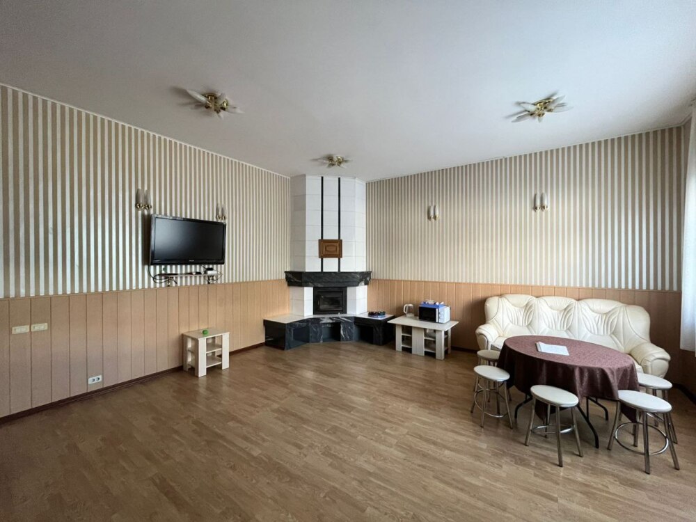 - Гостиная с камином и телевизором.