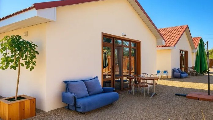 Трёхкомнатный коттедж расположен в 50 метрах от моря. В нём есть всё необходимое для комфортного отдыха: