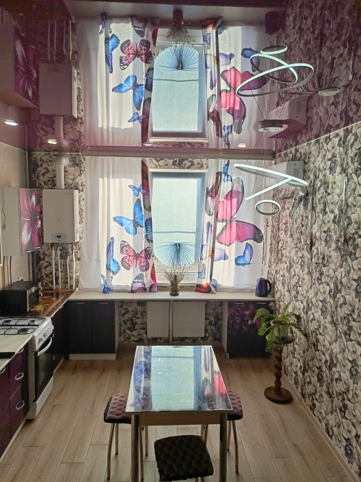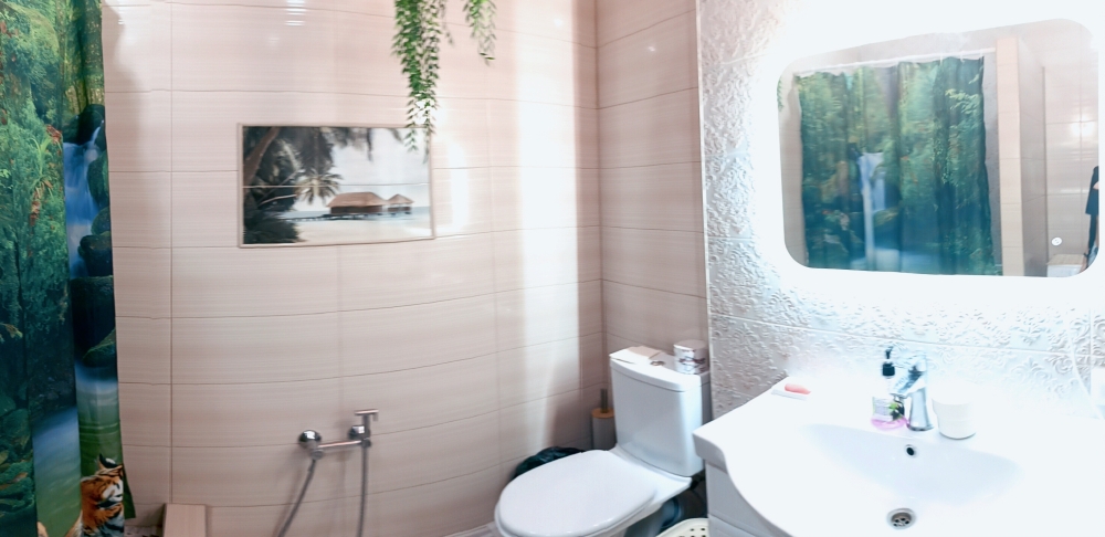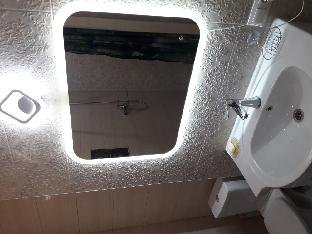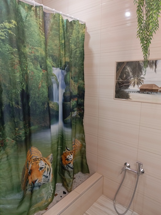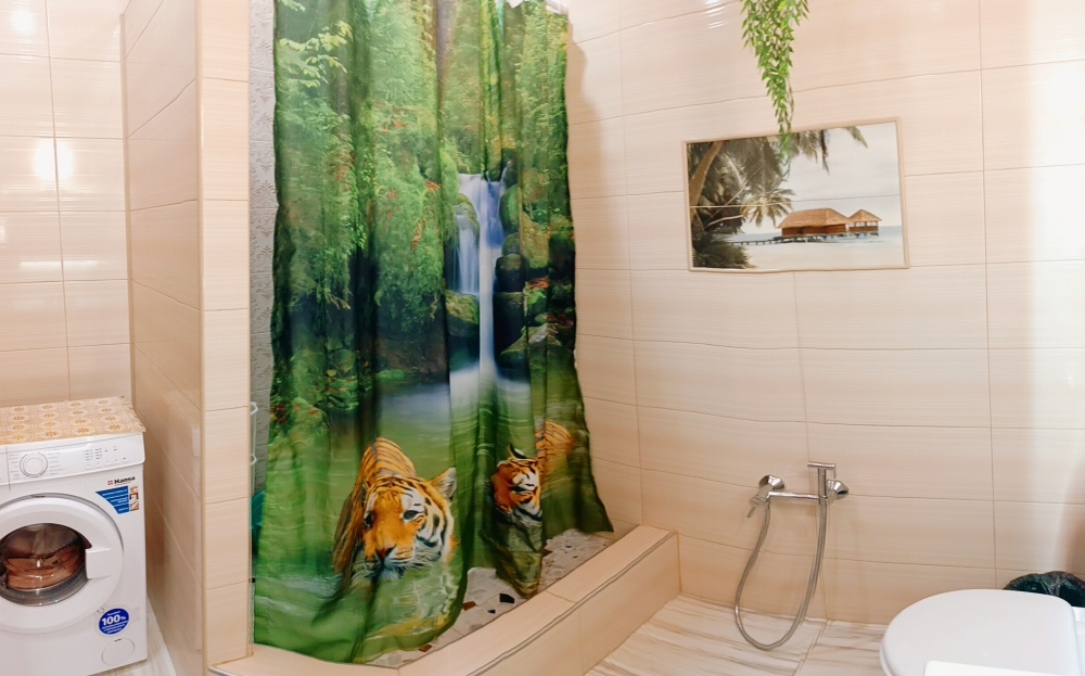 На комфортной кухне есть газовая плита, столовые приборы, набор посуды, фильтр для воды, духовка, электрочайник, микроволновая печь, холодильник.В ванной есть сушилка для белья, теплый пол, стиральная машинка, душевая кабина, полотенца.