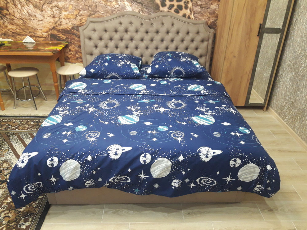 В квартире есть 1 двуспальная кровать, 1 односпальная кровать, 1 диван на 2 места, постельное белье для всех гостей, утюг, телевизор, обогреватель, гладильная доска, москитные сетки на окнах, кондиционер, интернет Wi-Fi, домофон, видеодомофон, охранная система, пожарная сигнализация, балкон.
