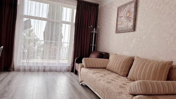 Светлые, просторные апартаменты на 2-м этаже трехэтажного здания. С балкона открывается красивый вид на южное побережье Черного моря. Вас ожидает спокойный отдых для семьи из 2-4 человек.