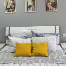Двуспальная кровать и с качественным матрасом. Наши гости могут готовить на полностью оборудованной кухне с бытовой техникой и посудой. Есть электрическая плита, чайник, СВЧ-печь, холодильник. Автоматическая стиральная машина и утюг позволяют сохранить чистоту и аккуратный внешний вид. Всегда свежие полотенца и постельное белье. Ванная комната с чистой и исправной сантехникой, всегда горячая и холодная вода.