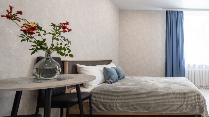 Студия подходит для 1-2 человек. По классике наших апартаментов есть всё, что может понадобится в повседневной жизни. Начиная от скоростного Wi-Fi, бытовой техники и заканчивая средствами гигиены.