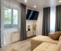 - Гостиная c диваном (спальное место 160*200), двуспальная кровать (спальное место 160*200). Возможно размещение до 6 гостей, в этом случае предоставим двуспальный надувной матрас 160*200 см. и комплект белья.