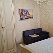 Номер расположен на первом этаже . В номере большая двуспальная кровать , косметический столик , Окна номера выходят во внутренний двор , вход в номер отдельный. Туалетная комната удобна и гармонична душевая туалетные принадлежности.