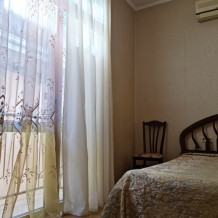 В номере большая двуспальная кровать , косметический столик , в удобный диван, Окна номера выходят во внутренний двор, большое преимущество номера балкон. Туалетная комната удобна и гармонична душевая кабинка, туалетные принадлежности. Один ребёнок до 6 лет — можно без отдельного спального места.