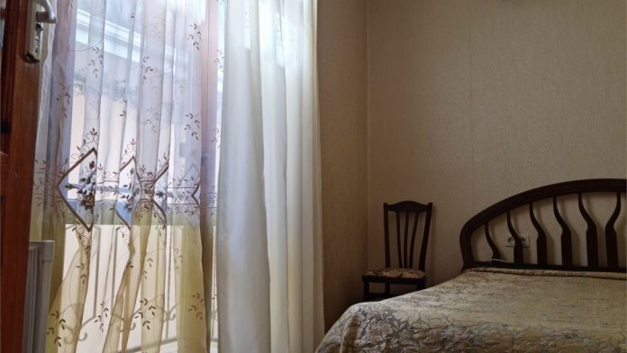 Номер «Стандарт четырехместный» с выходом на террасу второго этажа, выполнен в современном стиле, оборудован кондиционером, ТВ, холодильником, в номере одна двуспальная кровать и два раскладных дивана, что позволяет гостям чувствовать себя комфортно и наслаждаться отдыхом в нашем гостевом доме. Терраса номера выходит во внутренний двор второго корпуса и позволяет сохранять тишину в номере и оградить Вас от шумной городской жизни. Один ребёнок до 6 лет — можно без отдельного спального места.