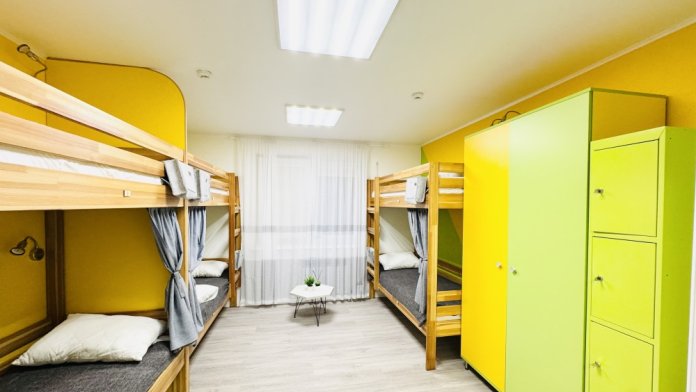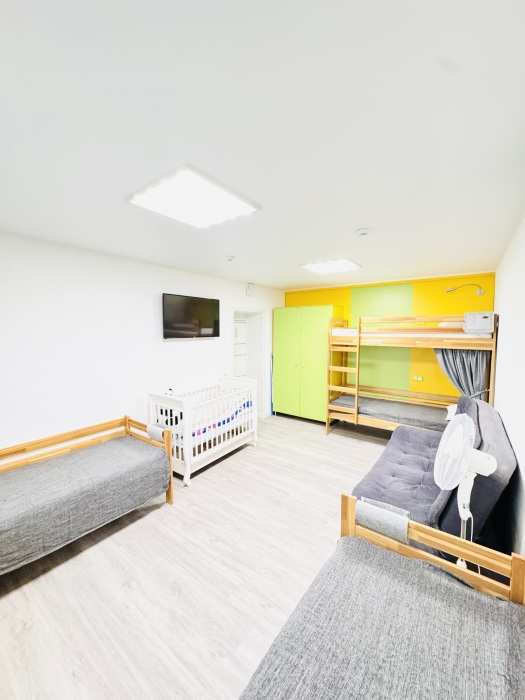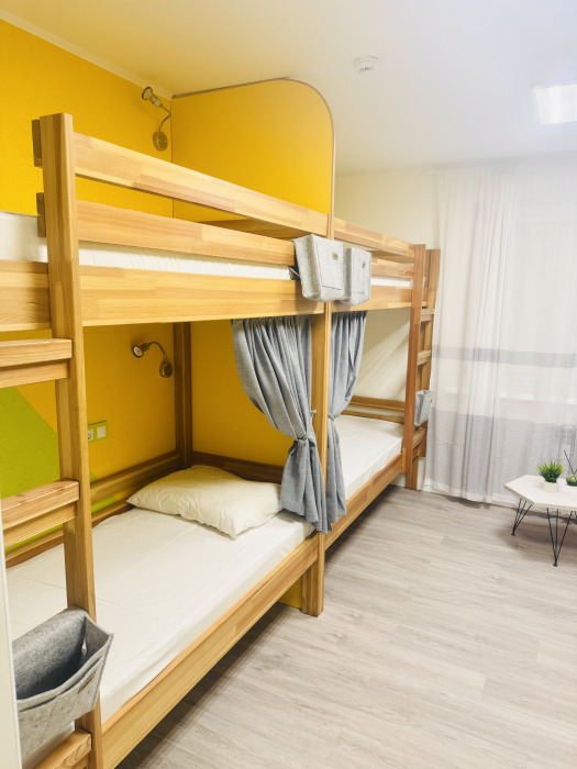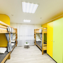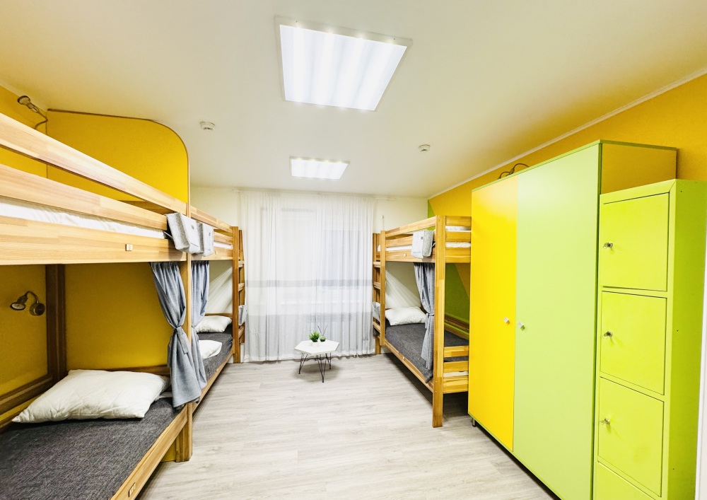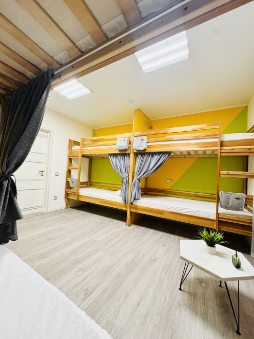 Уютный номер вместимостью 8 человек.Общая ванная комната на этаже. Чтобы забронировать койко-место более чем на одного человека в бронировании ставьте «взрослых-1 и добавляйте номера»
