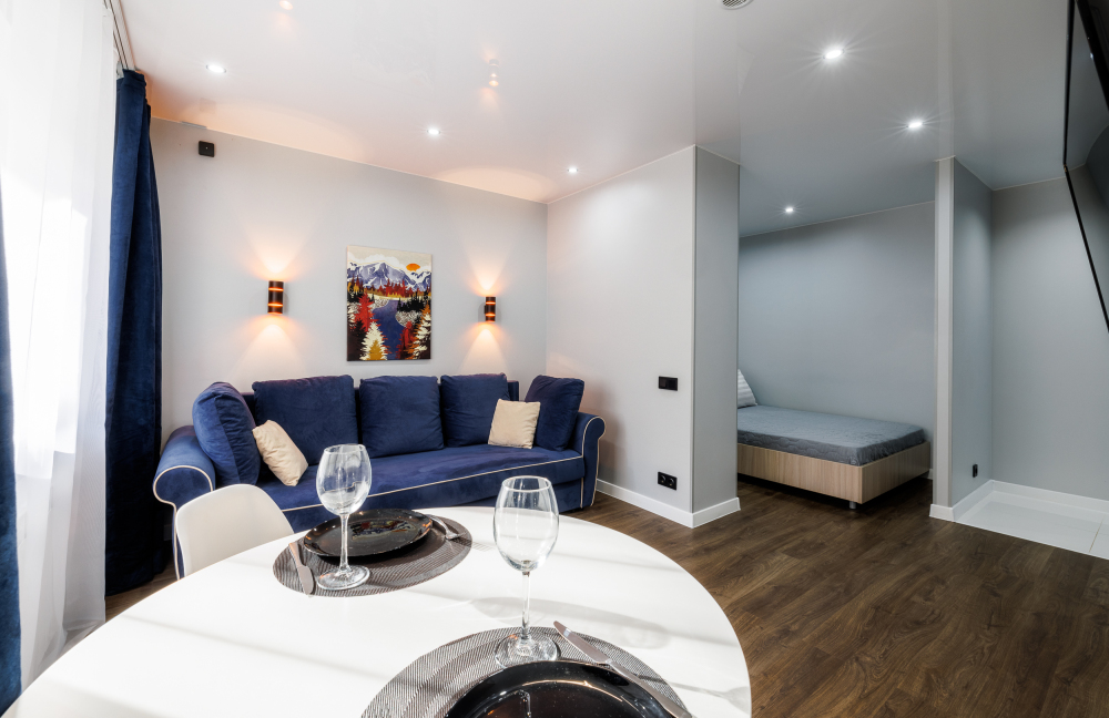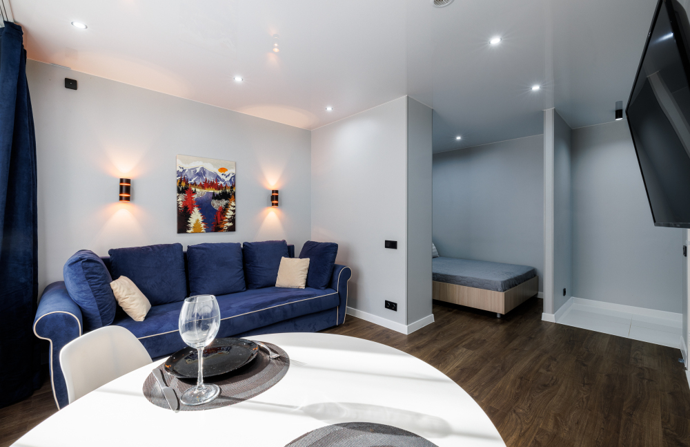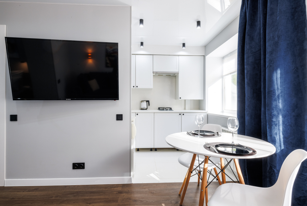 В апартаментах есть всё самое необходимое: телевизор, Wi-Fi, фен, утюг, стиральная машина, чайник, микроволновая печь, плита, холодильник, столовые приборы и базовая посуда, чай и кофе. Мы предоставляем нашим гостям полотенца, гель для душа, свежее постельное белье и тапочки.