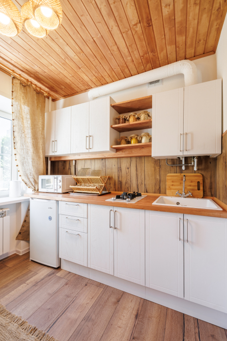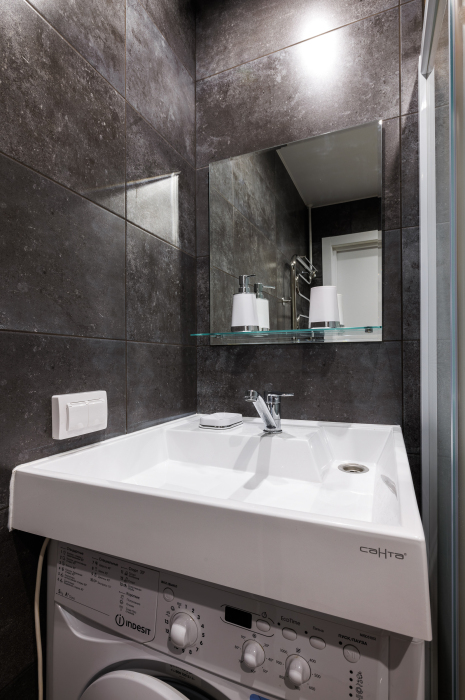 В апартаментах есть всё самое необходимое: телевизор, Wi-Fi, фен, утюг, стиральная машина, чайник, микроволновая печь, плита, холодильник, столовые приборы и базовая посуда, чай и кофе. Мы предоставляем нашим гостям полотенца, гель для душа, свежее постельное белье и тапочки.