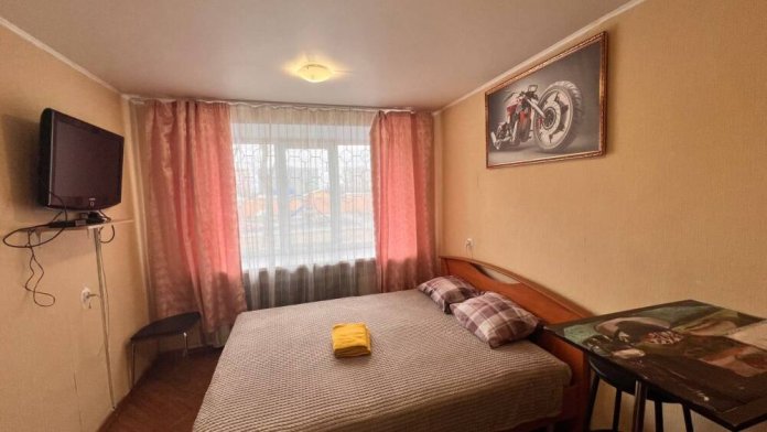 Студия поделена на зоны: кухня, обеденная зона, зона отдыха и сна. В зоне отдыха размещена двуспальная кровать. Кухня оборудована всем необходимым: варочная поверхность, микроволновая печь, холодильник, электрочайник, комплект посуды для приготовления пищи, стиральная машина автомат, а также набор тарелок и столовых приборов. В санузле размещена душевая, туалет, ГВС, вытяжка.