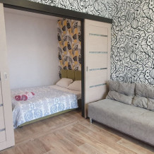 Двуспальная кровать, диван и кресло-кровать (три раздельных спальных места).