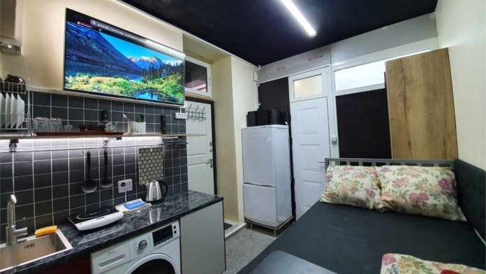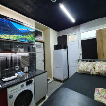 Для комфорта: смарт ТВ телевизор, сплит-система «зима-лето», стиральная машина, холодильник, чайник, плита для приготовления, микроволновая печь, кухонная посуда, утюг, гладильная доска, фен.