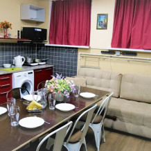Для комфорта: смарт ТВ телевизор, сплит-система «зима-лето», стиральная машина, холодильник, чайник, плита для приготовления, микроволновая печь, кухонная посуда, утюг, гладильная доска, фен.