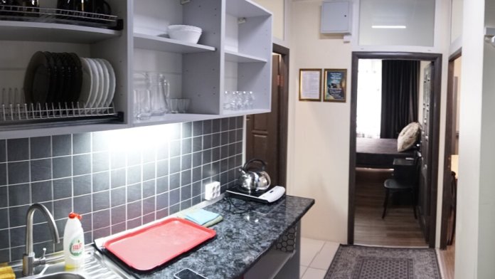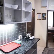 Для комфорта: смарт ТВ телевизор, сплит-система «зима-лето», стиральная машина, холодильник, чайник, плита для приготовления, микроволновая печь, кухонная посуда, утюг, гладильная доска, фен.