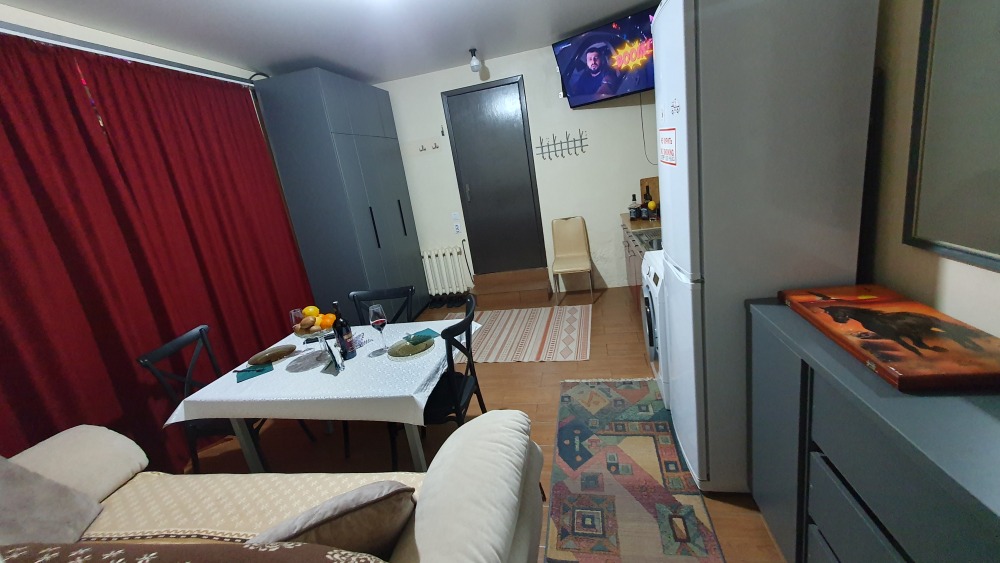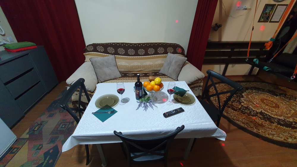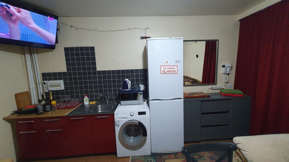Для комфорта: смарт ТВ телевизор, сплит-система «зима-лето», стиральная машина, холодильник, чайник, плита для приготовления, микроволновая печь, кухонная посуда, утюг, гладильная доска, фен.