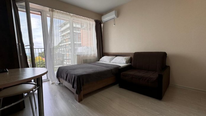 Дорогие гости, добро пожаловать в ЖК «Каравелла Португалии». В доме имеется лифт. Широкая береговая линия, чистое море, множество кафе, баров, игровых площадок. Море в 1 минуте ходьбы с широким пляжем. Ж/д вокзал в 2 минуты ходьбы. До центра Сочи - 15 минут на Ласточке (станция рядом), на маршрутке 20-25 минут. На охраняемой закрытой территории расположены детские, спортивные площадки, бассейн, развлечения для детей (клуб, прокат машинок), экскурсии, кафе, магазины и рынок рядом.