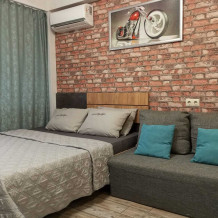 Гостиная зона: двуспальная кровать, кресло-кровать, комод для одежды, напольная вешалка, ЖК телевизор.