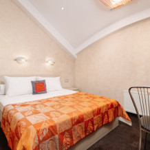 Комфортный двухместный номер 15 кв.м. с двуспальной кроватью и прекрасным видом на звездное небо, расположенный на уютной мансарде (4 этаж). Номер оснащен всеми современными удобствами, которые сделают Ваш отдых максимально комфортным: сплит-система, Смарт ТВ, Wi-Fi, холодильник, набор посуды, электрический чайник, фен, туалетно-косметические принадлежности (гель для душа, мыло, шампунь), полотенца. Просторная ванная комната с ванной и санузлом. На этаже имеется зона отдыха, утюг, гладильные принадлежности общего пользования.