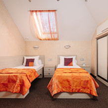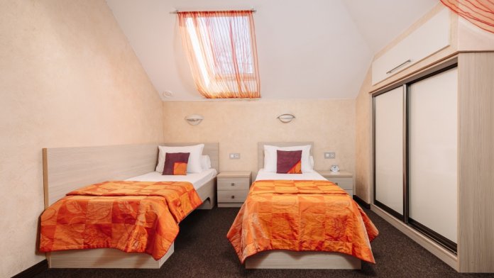 Двухместный номер 15 кв.м. с двумя раздельными кроватями и прекрасным видом на звездное небо, расположенный на уютной мансарде (4 этаж). Номер оснащен всеми современными удобствами, которые сделают Ваш отдых максимально комфортным: сплит-система, ТВ, Wi-Fi, холодильник, набор посуды, электрический чайник, туалетно-косметические принадлежности (гель для душа, мыло, шампунь), полотенца. Ванная комната с ванной и санузлом. На этаже имеется зона отдыха, утюг, гладильные принадлежности общего пользования.