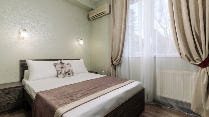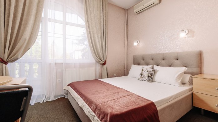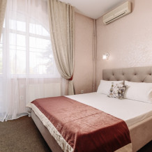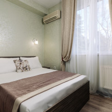 Двухместный номер 15 кв.м. с двуспальной кроватью и прекрасным видом на горд, расположенный на 2,3 этаже. Номер оснащен всеми современными удобствами, которые сделают Ваш отдых максимально комфортным: сплит-система, ТВ, Wi-Fi, холодильник, набор посуды, электрический чайник, фен,туалетно-косметические принадлежности (гель для душа, мыло, шампунь), полотенца. Ванная комната с ванной/душем и санузлом. На этаже имеется зона отдыха, утюг, гладильные принадлежности общего пользования.
