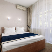 Двухместный номер 15 кв.м. с двуспальной кроватью, расположенный на 2,3 этаже. Уютный балкончик является отличным дополнением. Номер оснащен всеми современными удобствами, которые сделают Ваш отдых максимально комфортным: сплит-система, ТВ, Wi-Fi, холодильник, набор посуды, сушилка, электрический чайник, фен, туалетно-косметические принадлежности (гель для душа, мыло, шампунь), полотенца. Ванная комната с душем и санузлом. На этаже имеется зона отдыха, утюг, гладильные принадлежности общего пользования.