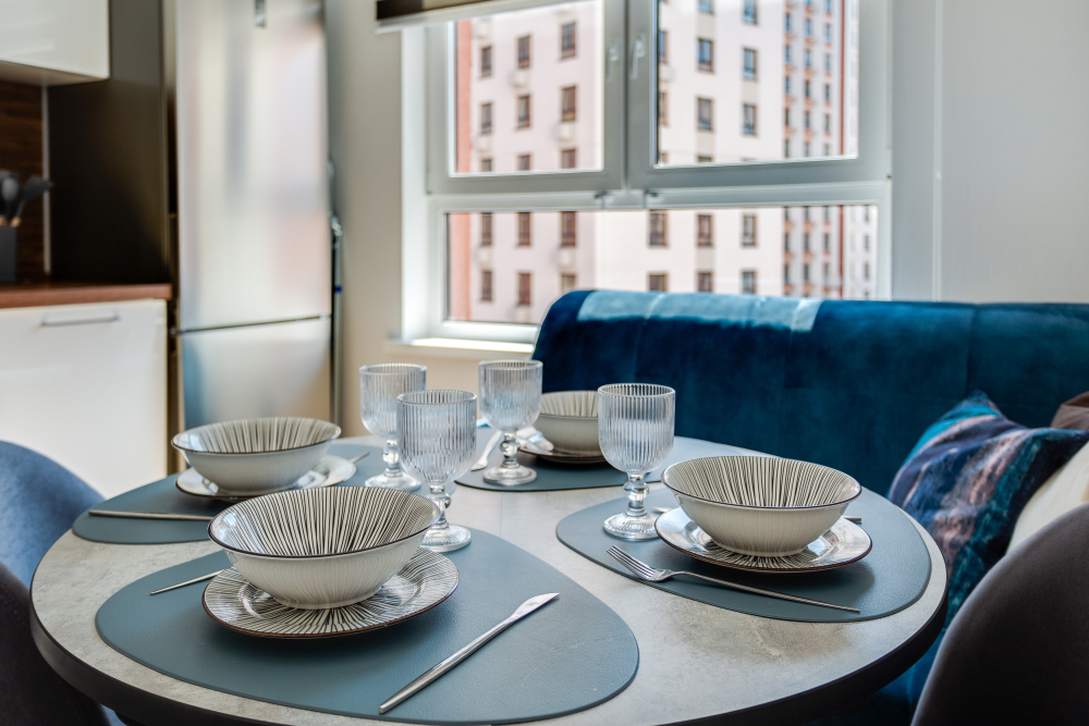 - Посуду для приготовления пищи и столовую посуду, в том числе винные бокалы, чистое белье, полотенца, одноразовые тапочки и средства гигиены, чай, кофе, сахар.