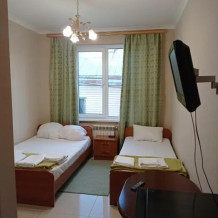 В Вашем распоряжении бассейн, зона барбекю с мангалом, настольный теннис, батут для детей, детские качели. Уютные светлые номера с собственным сан узлом и душем. В каждом номере установлены ЖК-телевизор, мини-холодильник, кондиционер, Wi-Fi. Просторная общая кухня, оснащённая всей необходимой техникой.