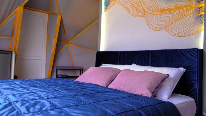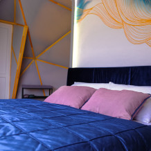 Удобства: двуспальная кровать Queen Size (160x200) с ортопедическим матрасом, белоснежное постельное белье из сатина, микроволновая печь, чайник, набор посуды, холодильник, стол и кресла, место для хранения вещей, душ и туалет, косметика для душа, махровые полотенца, халаты, тапочки, фен, бесплатный Wi-Fi, кондиционер, сушилка для белья.