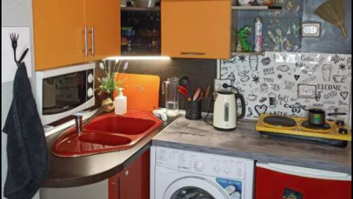 Вся необходимая посуда, плита, микроволновка, чайник, холодильник и набор для приготовления еды (растительное масло, соль, перец, сахар).