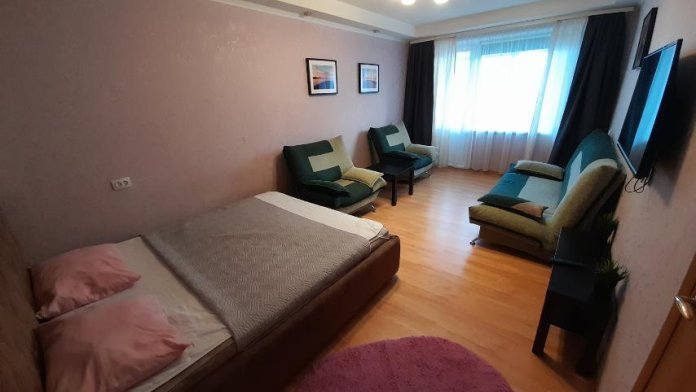 Хороший ремонт, стеклопакеты, ламинат. Есть вся необходимая мебель для комфортного проживания: двухспальная тахта, мягкая мебель, бытовая техника, санузел «под ключ». Стиральная машина, плазменный ТВ, посуда, всё необходимое для комфортного проживания. Безлимитный Wi-Fi Интернет.