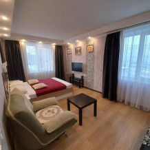 Хороший ремонт, стеклопакеты, ламинат. Есть вся необходимая мебель для комфортного проживания: двухспальная тахта, мягкая мебель, бытовая техника, санузел «под ключ». Стиральная машина, плазменный ТВ, посуда, всё необходимое для комфортного проживания. Безлимитный Wi-Fi Интернет.