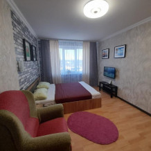Хороший ремонт, стеклопакеты, ламинат. Есть вся необходимая мебель для комфортного проживания: двухспальная тахта, мягкая мебель, бытовая техника, санузел «под ключ». Стиральная машина, плазменный ТВ, посуда, всё необходимое для комфортного проживания. Безлимитный Wi-Fi Интернет.