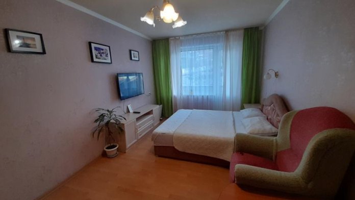 Хороший ремонт, стеклопакеты, ламинат. Есть вся необходимая мебель для комфортного проживания: двухспальная тахта, мягкая мебель, бытовая техника, санузел «под ключ». Стиральная машина, плазменный ТВ, посуда, всё необходимое для комфортного проживания. Безлимитный Wi-Fi Интернет.