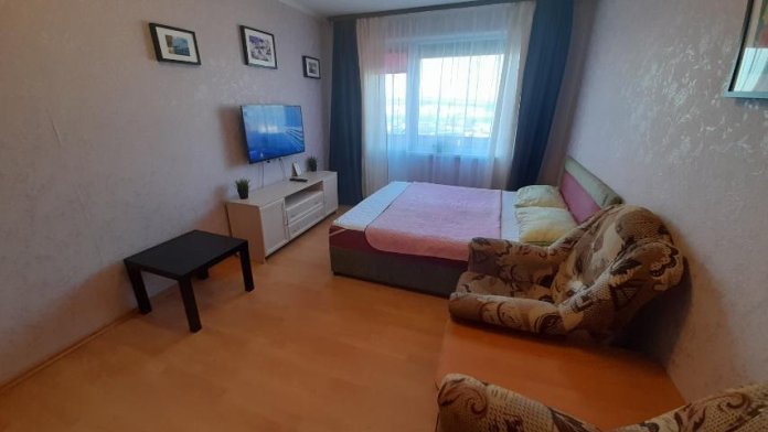 Хороший ремонт, стеклопакеты, ламинат. Есть вся необходимая мебель для комфортного проживания: двухспальная тахта, мягкая мебель, бытовая техника, санузел «под ключ». Стиральная машина, плазменный ТВ, посуда, всё необходимое для комфортного проживания. Безлимитный Wi-Fi Интернет.