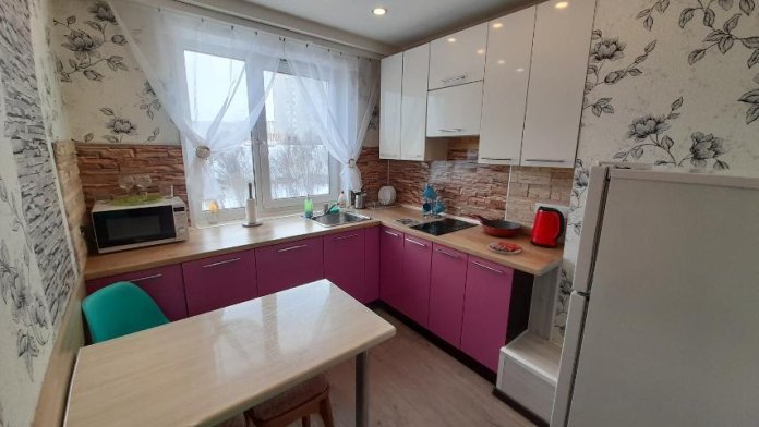 Хороший ремонт, стеклопакеты, ламинат. Есть вся необходимая мебель для комфортного проживания: двухспальная тахта, мягкая мебель, бытовая техника, санузел «под ключ». Стиральная машина, плазменный ТВ, посуда, всё необходимое для комфортного проживания. Безлимитный Wi-Fi Интернет.