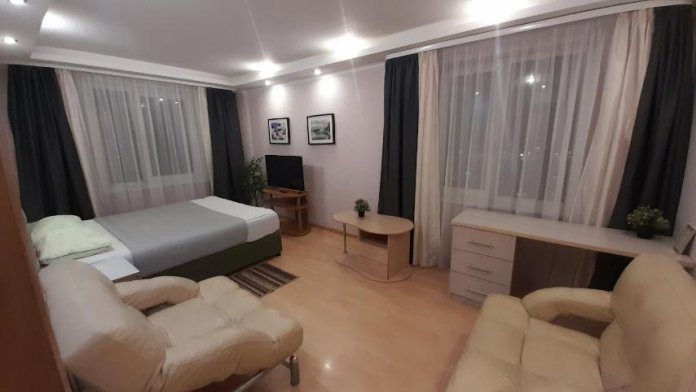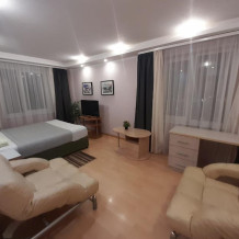 Хороший ремонт, стеклопакеты, ламинат. Есть вся необходимая мебель для комфортного проживания: двухспальная тахта, мягкая мебель, бытовая техника, санузел «под ключ». Стиральная машина, плазменный ТВ, посуда, всё необходимое для комфортного проживания. Безлимитный Wi-Fi Интернет.