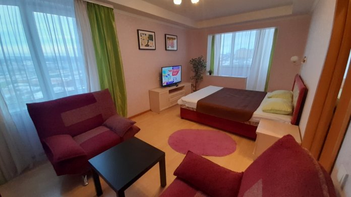 Хороший ремонт, стеклопакеты, ламинат. Есть вся необходимая мебель для комфортного проживания: двухспальная тахта, мягкая мебель, бытовая техника, санузел «под ключ». Стиральная машина, плазменный ТВ, посуда, всё необходимое для комфортного проживания. Безлимитный Wi-Fi Интернет.