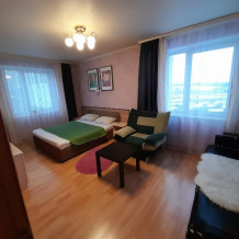 Комфортабельная, благоустроенная, однокомнатная квартира с современным евро-ремонтом. Квартира полностью оборудована всем необходимым для проживания: TV, интернет, двухспальная тахта, кресла, электрическая плита, стиральная машина, электрочайник, полный набор посуды, СВЧ, утюг, большие махровые полотенца, просторная ванная комната, журнальный столик.