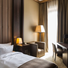 Уютный однокомнатный номер площадью 20 кв. м располагает односпальной кроватью. Оформление интерьеров выдержано в цветовой гамме, в распоряжении гостей имеется удобный рабочий стол с дополнительным освещением, платяной шкаф, спутниковое телевидение и Wi-Fi доступ в интернет. Ванные комнаты оборудованы: косметическим зеркалом, феном для волос набором косметики и бритвенными принадлежностями. Номера оборудованы электронными замками, стеклопакетами с шумоизоляцией, сейфами, кондиционерами и мини-барами.