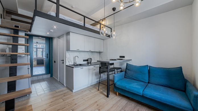 Отдельная спальная зона на втором уровне лофта для полноценного отдыха - вся необходимая мебель для проживания: 4 спальных места: двуспальная кровать и раскладывающийся диван для 2-х гостей. Кухонный уголок со всей необходимой посудой для приготовления ваших кулинарных шедевров - необходимая бытовая техника и приборы: телевизор, фен, стиральная машина, плита, кондиционер, отпариватель для одежды - скоростной WI-FI, Спутниковое ТВ - полотенца, постельное белье, шампунь/гель/мыло
