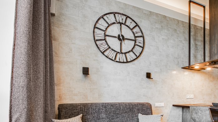 В апартаментах отдельная спальня с двуспальной кроватью и вместительной гардеробной, в которой есть гладильная доска и утюг.