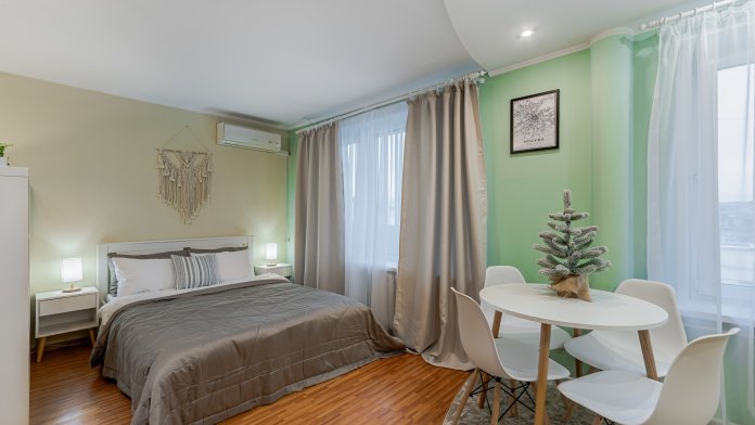 В квартире двухспальная кровать с ортопедическим матрасом для полноценного отдыха - вся необходимая мебель для проживания для 2х гостей. Кухонный уголок со всей необходимой посудой для приготовления ваших кулинарных шедевров - необходимая бытовая техника и приборы: телевизор, фен, стиральная машина, плита, кондиционер, утюг. Скоростной WI-FI, Smart TV - полотенца, постельное белье, шампунь/гель/мыло.