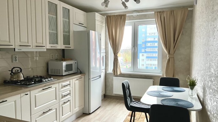 Квартира полностью соответствует фотографиям и оснащена качественной техникой и стильной мебелью. На просторной кухне есть вся необходимая посуда. В вашем распоряжении: TV, быстрый Wi-Fi, вместительные шкафы, стиральная машина, фен, электрический чайник, микроволновая печь, духовой шкаф, сушилка, утюг и доска. Для каждого гостя мы предоставляем: чистый комплект полотенец, постельное белье, гель для душа, шампунь