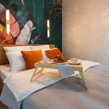 В квартире для удобного проживания имеется современная мебель и техника: одна большая двуспальная кровать (160*200см), двухспальный диван (160*200 см), бытовая техника, скоростной WI-FI, ТВ, стиральная машина, гладильная доска, утюг, сушка, оборудованная кухня, полный комплект посуды для приготовления и приёма еды, полотенца для лица и тела, шампунь, мыло (на 1 сутки проживания), тапочки.